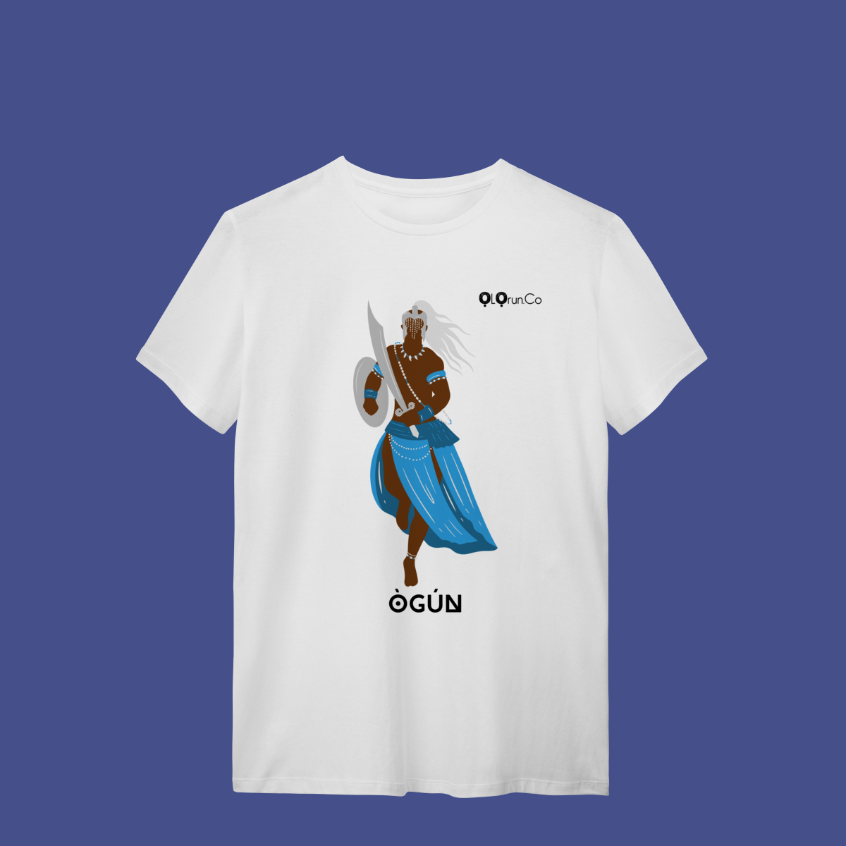 Inspirada no poder do Orixá guerreiro, esta camiseta traz a energia de Ogum: força, coragem e abertura de caminhos. Com design marcante e acabamento de alta qualidade, é a peça ideal para quem carrega a vibração da vitória no dia a dia. Estilo, identidade e proteção em uma só camisa.